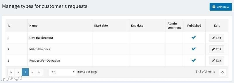 1- امکان تعیین محصولاتی (دسته‌ها، تولید کنندگان) که گزینه ارسال درخواست درباره قیمت را دارا می‌باشند.