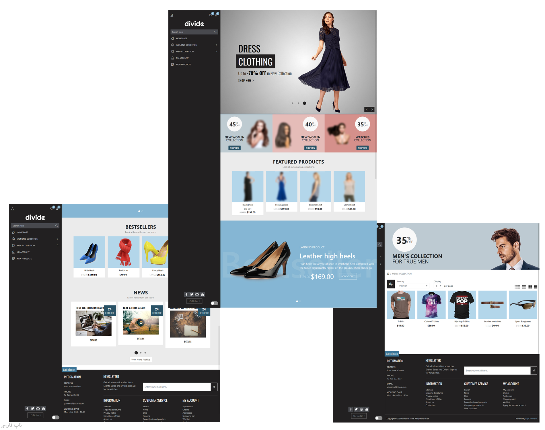 قالب فروشگاهی دیوایدر، یک قالب مناسب برای انواع فروشگاههای اینترنتی ایجاد شده توسط فروشگاه ساز اینترنتی ناپکامرس (nopCommerce) است. این قالب با ارائه طراحی خاص، ویژه و منحصر به فرد به فروشگاههای اینترنتی باعث برانگیختن حس کنجکاوی مشتریان و بازدید کنندگان خواهد شد و احتمال فروش را افزایش خواهد داد. این قالب که یکی از خاصترین قالبهای موجود از نظر طراحی است، باعث افزایش تجربه کاربری و رضایتمندی مشتریان از فروشگاه خواهد شد.