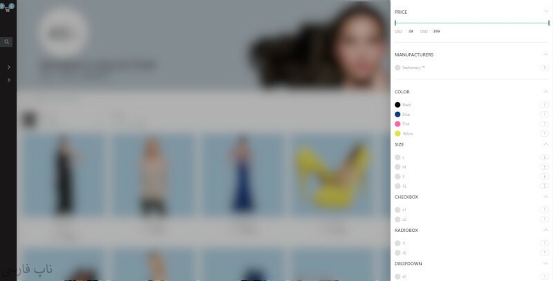 - بخش پالایه کردن محصولات صفحات دستهبندی: مشتریان فروشگاه میتوانند در بین محصولات موجود در فروشگاه، با استفاده از فیلترهای متنوع موجود، محصول مورد نظر خود را به سادگی پیدا کنند. با استفاده از این قابلیت مشتریان فروشگاه میتوانند محصولات فروشگاه را بر اساس مواردی مانند ویژگی محصولات، مشخصات محصولات، فروشنده و تولیدکننده فیلتر کرده و محصولات با موارد مشخص شده را به سادگی پیدا کنند.