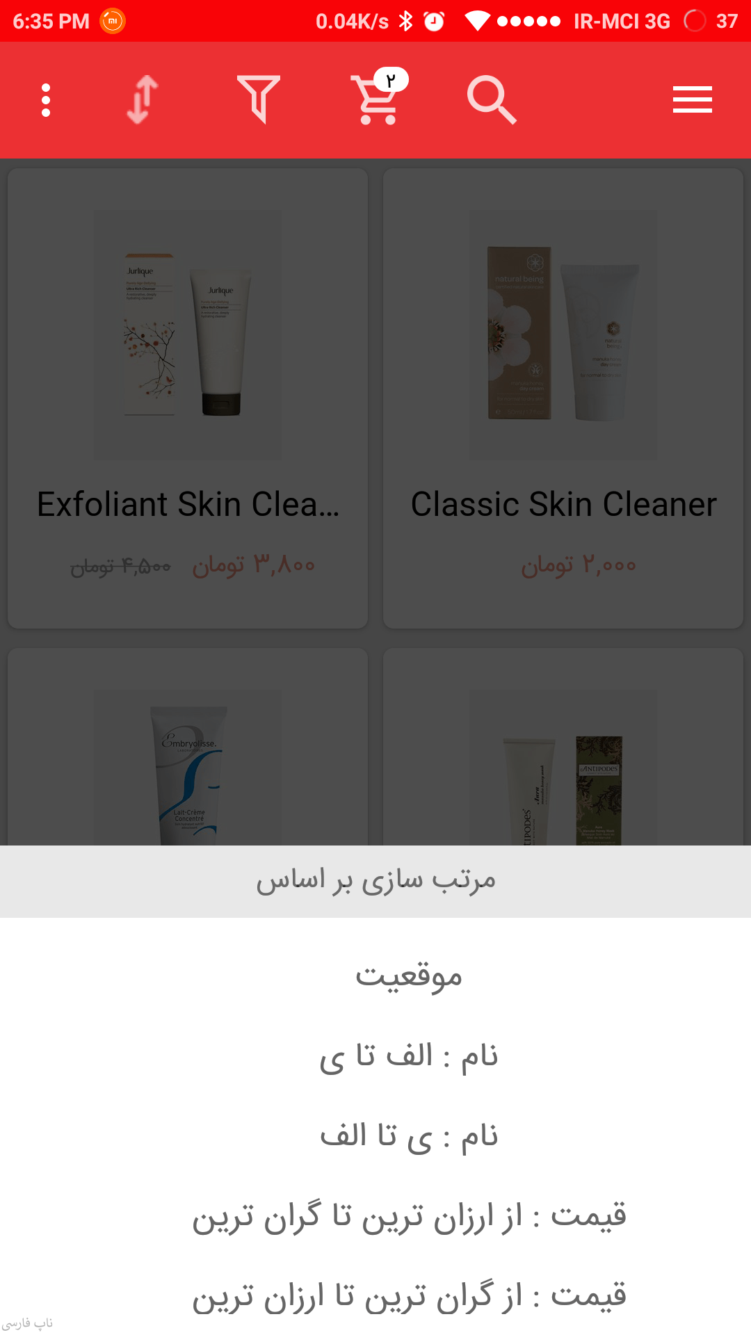 | فیلتر بر اساس قیمت و ویژگی های محصولات | |