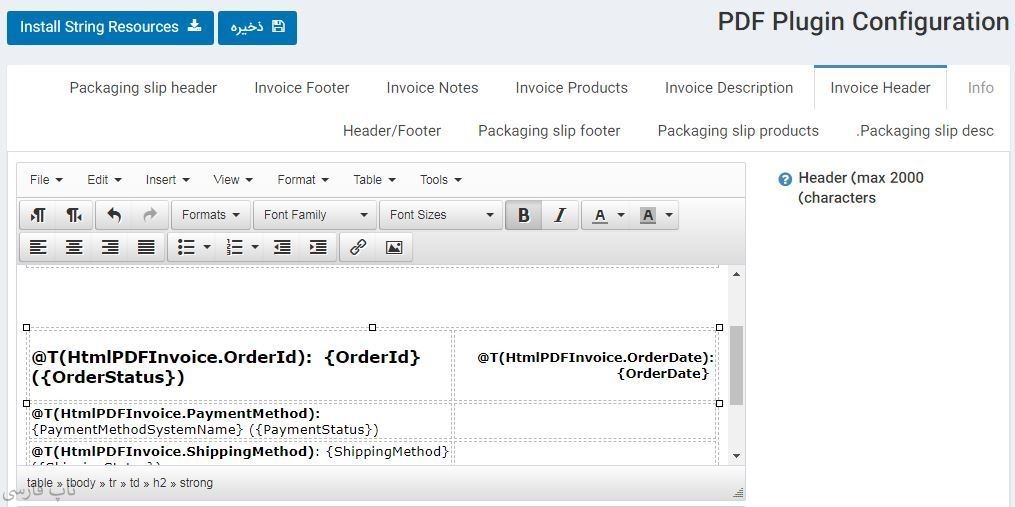 قابلیت سفارشی سازی قسمت های مختلف فاکتور