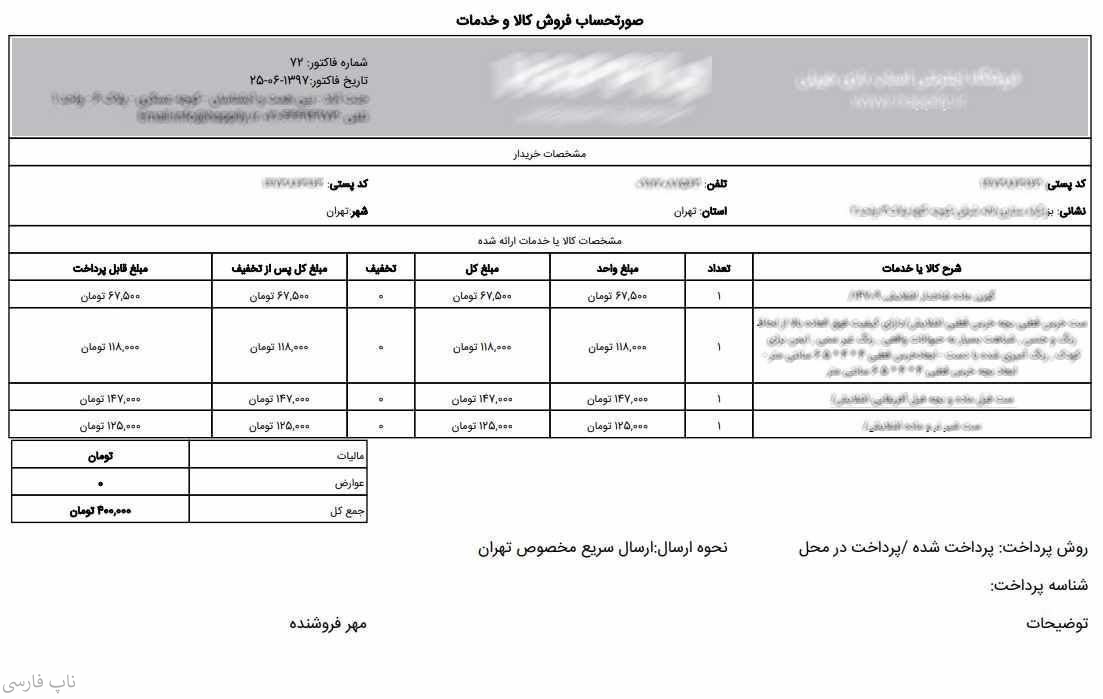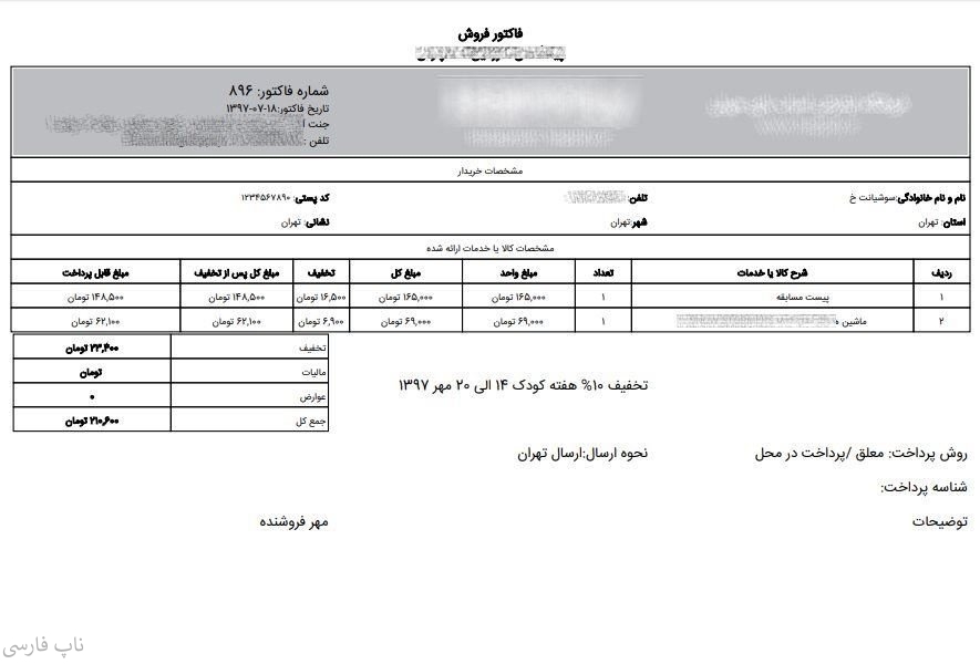 قابل شخصی سازی فاکتور خرید فروشگاه ساز پیشرفته ناپ کامرس