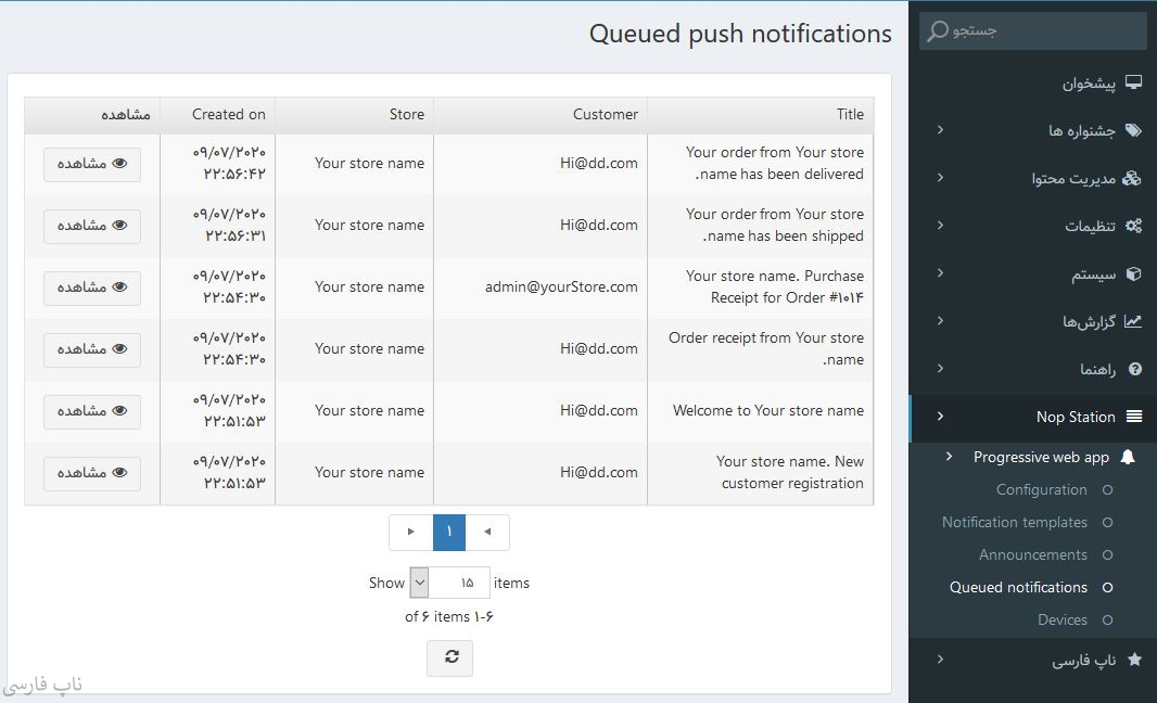 - امکان ارسال پیام اطلاع رسانی برای مدیریت در قالب push notification