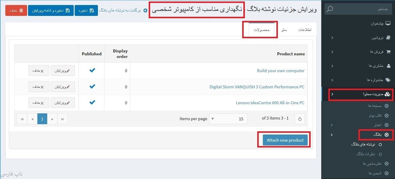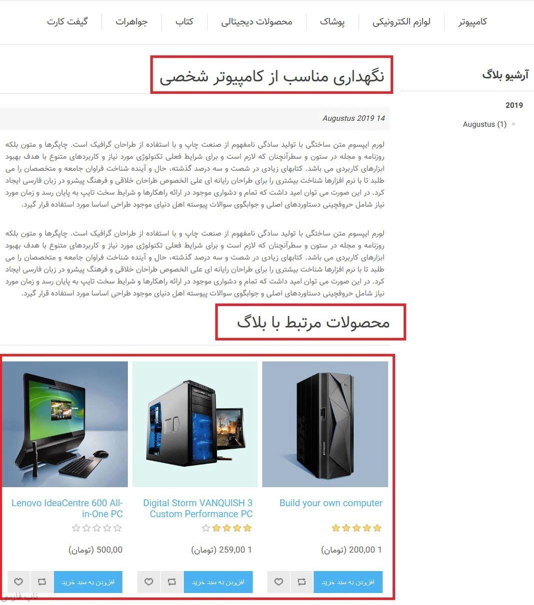 - قرار دادن فهرست محصولات مرتبط در صفحات پست بلاگ، اخبار و موضوعات.