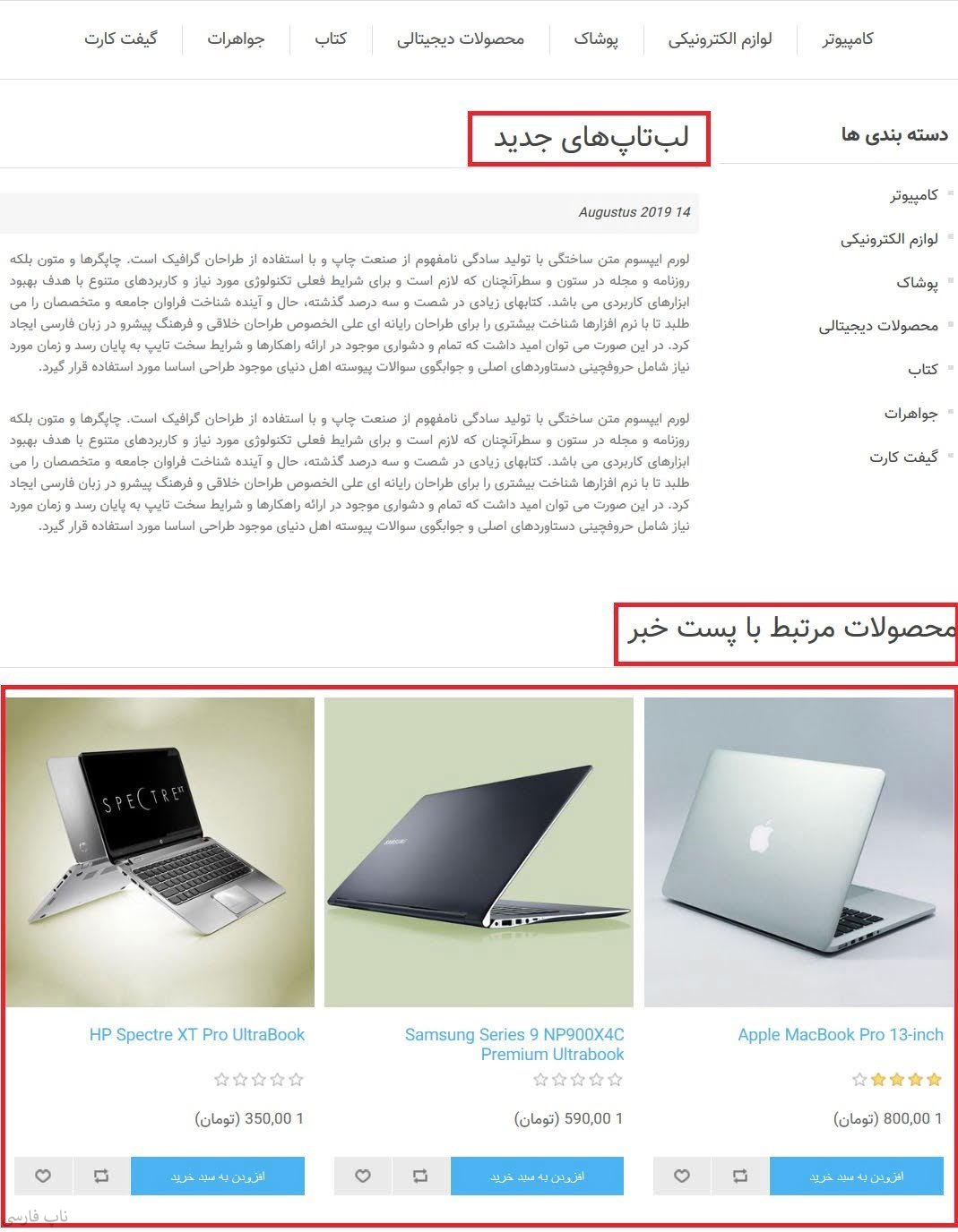 نمایش محصولات مرتبط وبلاگ و اخبار