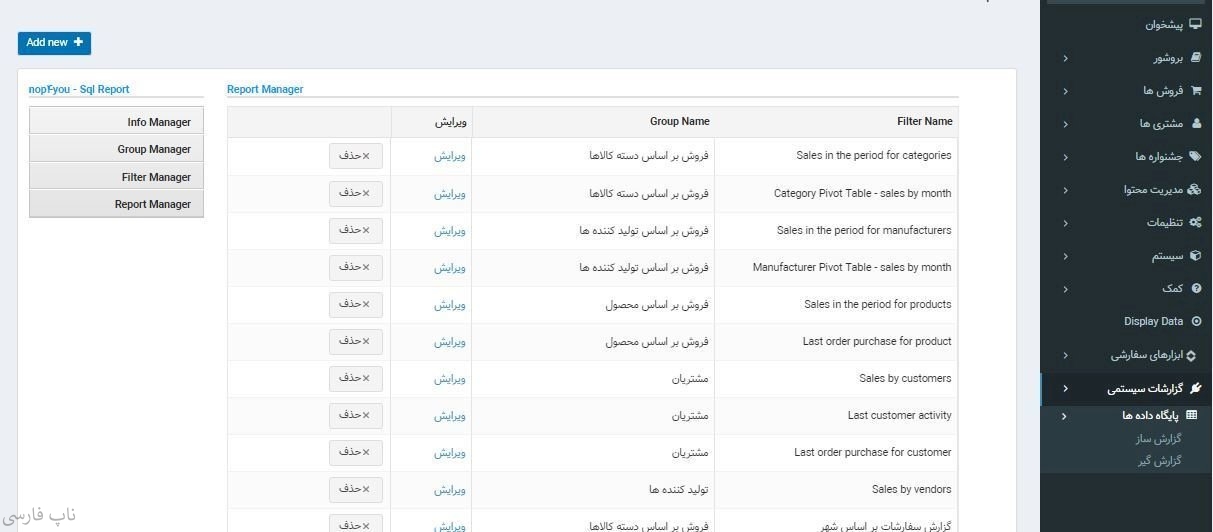 - قابلیت اضافه کردن گزارشها براساس گروههای خاص.
