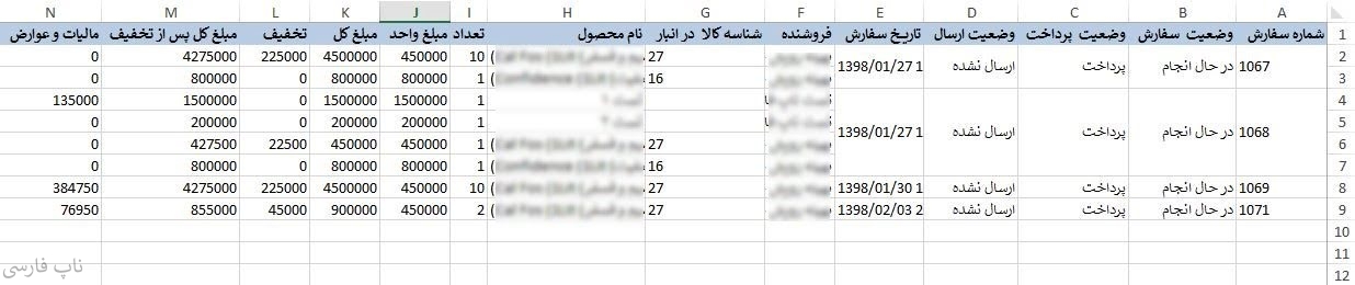 - ظهور دوگانه یک گزارش (درصفحه مرورگر و excel).