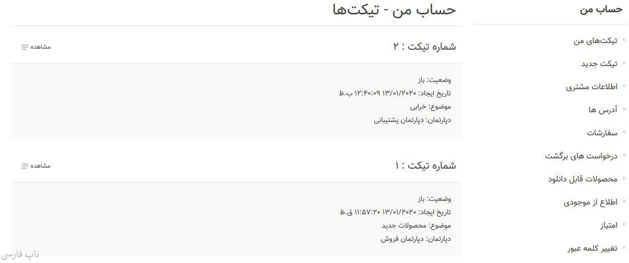 •حساب کاربری خود – با استفاده از گزینه لیست تیکت‌ها / اضافه کردن تیکت