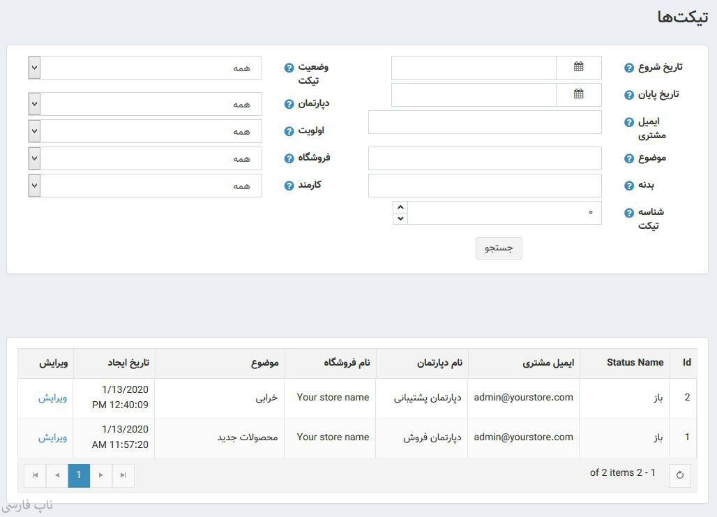 •مشاهده لیستی از تیکت‌های پست شده از مشتریان و توانایی پاسخ به آنها