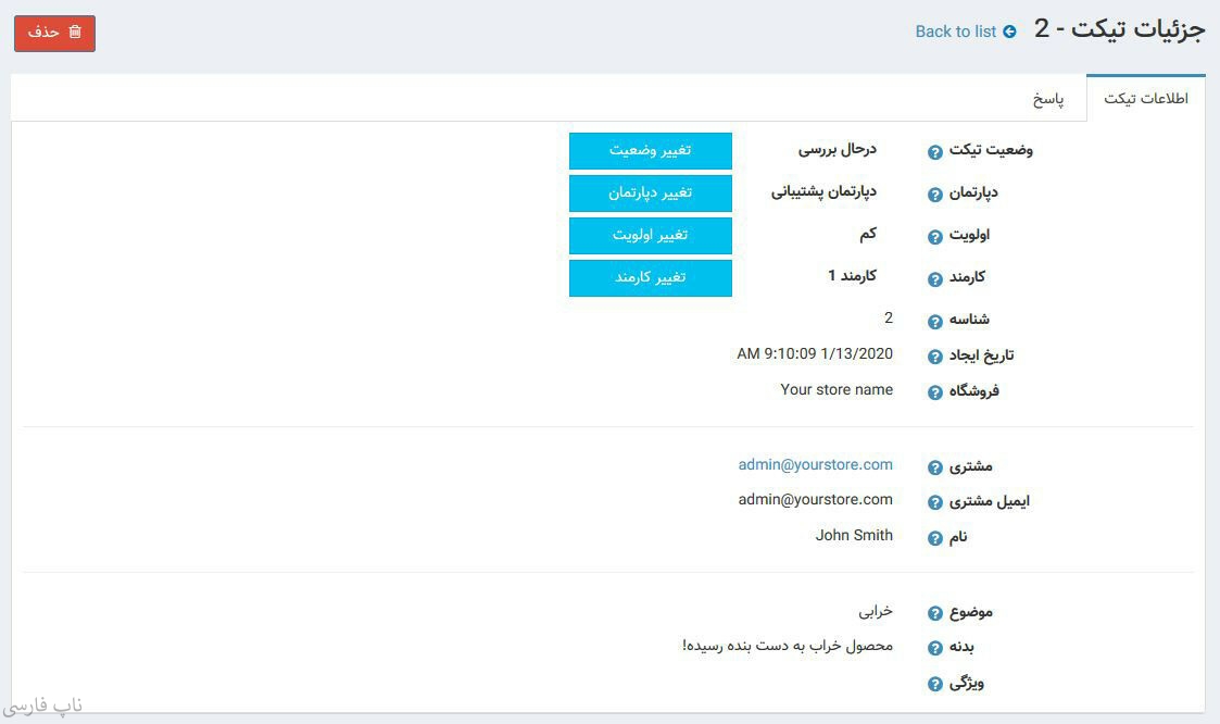 مدیریت تیکت‌ها در پنل مدیریت، ادمین می‌تواند: