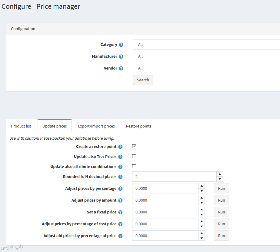- امکان تنظیم قیمتها بر اساس درصد یا مقدار.