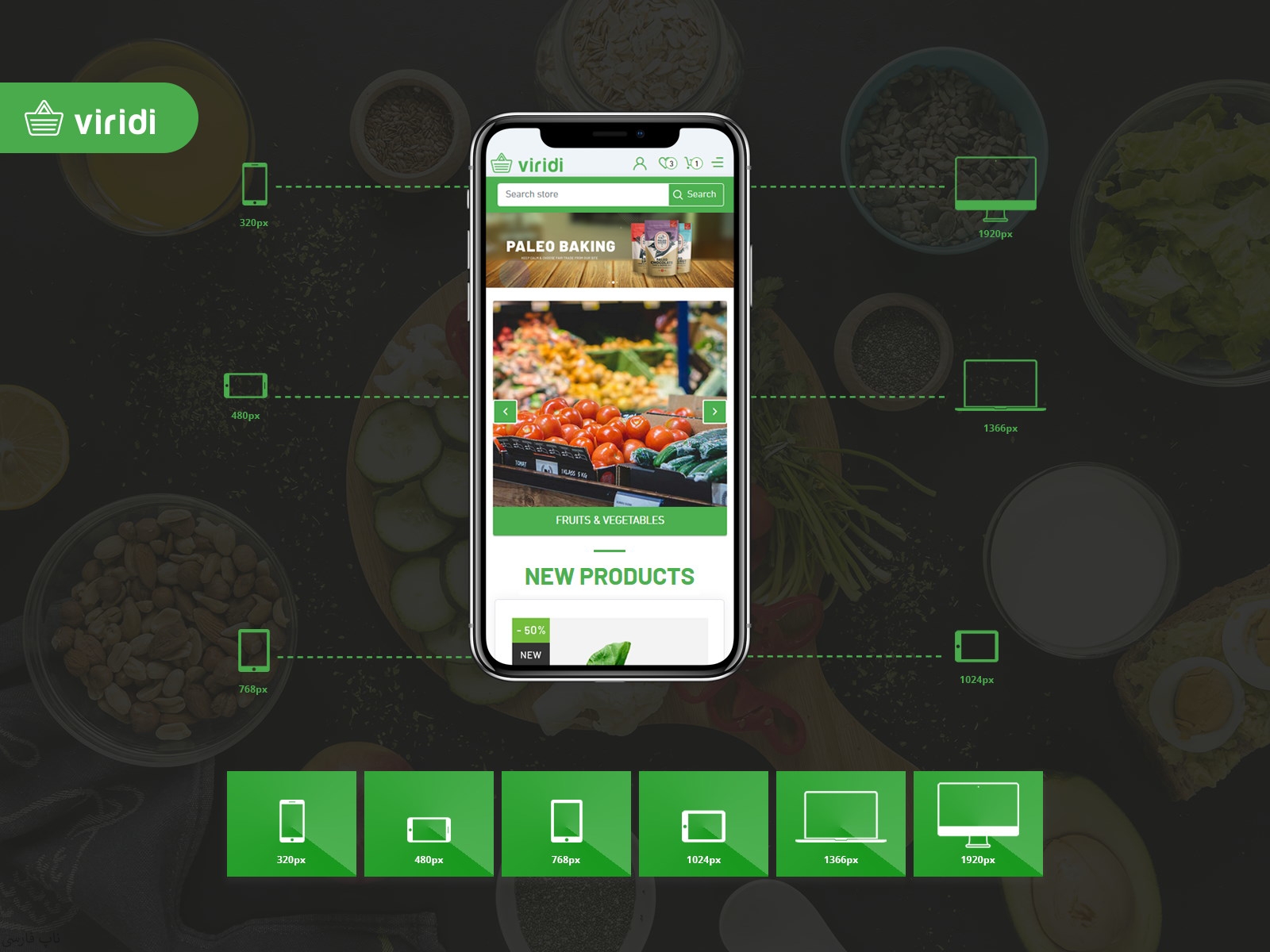 تم Viridi برای برجسته کردن انواع محصولات غذایی، مواد غذایی و محصولات ارگانیک طراحی شده است. این تم از تایپوگرافی ساده اما جذاب و یک پالت رنگی تازه و پر انرژی استفاده میکند که به طور کامل با مواد غذایی تازه، محصولات غذایی و ارگانیک هماهنگ است. تم Viridi برای انواع فروشگاههای مواد غذایی، غرفههای مواد غذایی، فروشگاههای بهداشتی و هر نوع مارکت ویژه ایدهآل است. همچنین این تم دارای انواع مختلفی از طرحبندیها برای دستگاههای مختلف و پشتیبانی از تمام مرورگرهای وب محبوب است.